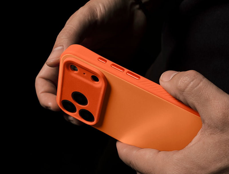 靈感源自優雅流暢的造型,Paragon 邊框設計了柔和的曲面凹槽,帶來細膩的觸感。背殼則採用 輕微紋理的霧面質感,並融入珍珠般的光澤,為底色增添深邃層次,同時有效抗刮耐磨。